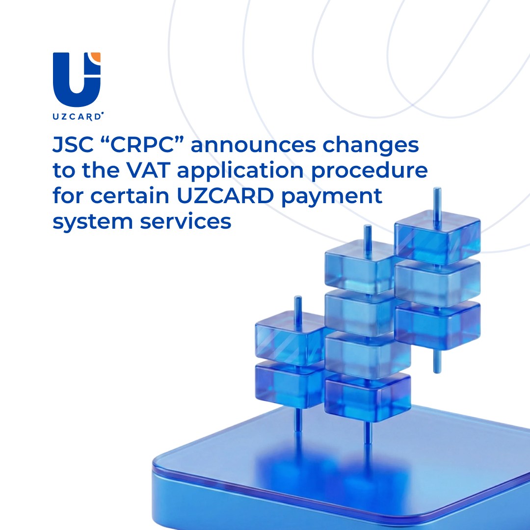 JSC “Common Republican Processing Centre” (JSC “CRPC”) hereby informs about changes in the value-added tax (VAT) application procedure for certain services of the UZCARD payment system.