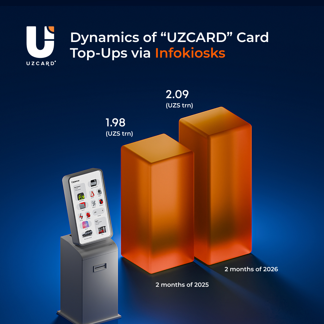 In the first two months of 2026, the total volume of «UZCARD» card top-ups via infokiosks reached UZS 2 trln, a 5% increase compared to the same period last year.