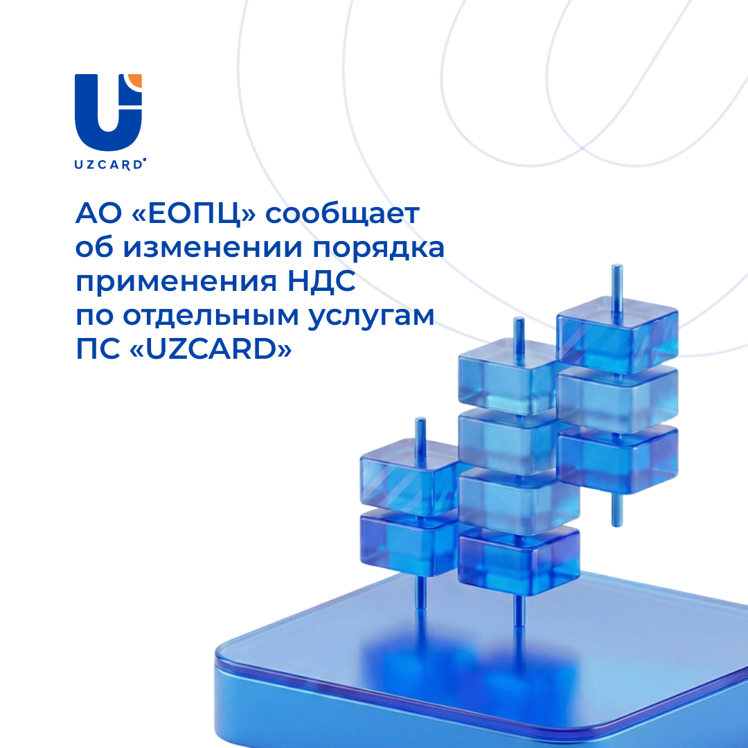 АО «Единый общереспубликанский процессинговый центр» (АО «ЕОПЦ») информирует об изменении порядка учета налога на добавленную стоимость (НДС) по отдельным услугам платежной системы «UZCARD».