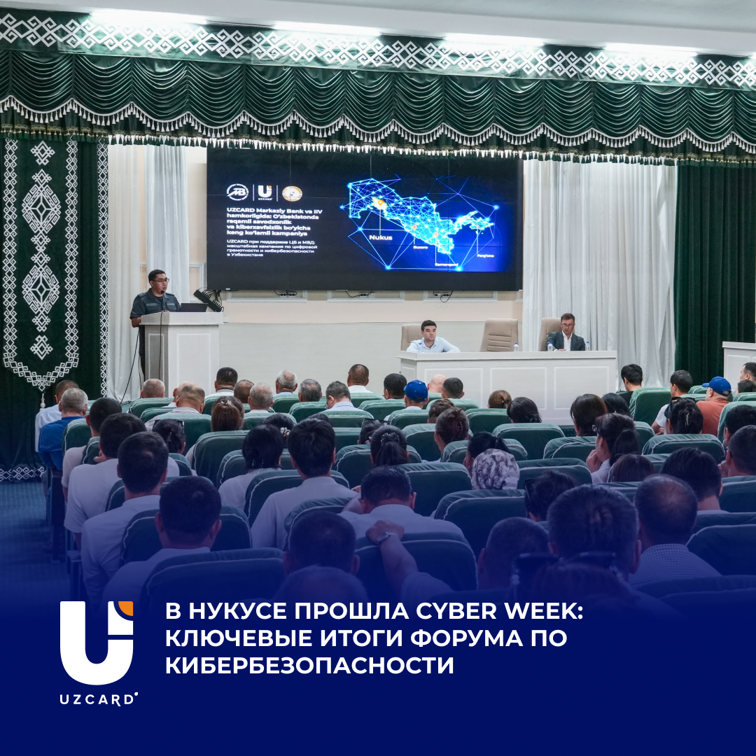 С 18 по 22 августа в Нукусе прошёл региональный этап программы CyberWeek — совместной инициативы Министерства внутренних дел и платёжной системы UZCARD. На площадке Нукусского государственного педагогического института имени Ажинияза собрались представители МВД, Центрального банка, коммерческих банков, IT-компаний и представителей СМИ.