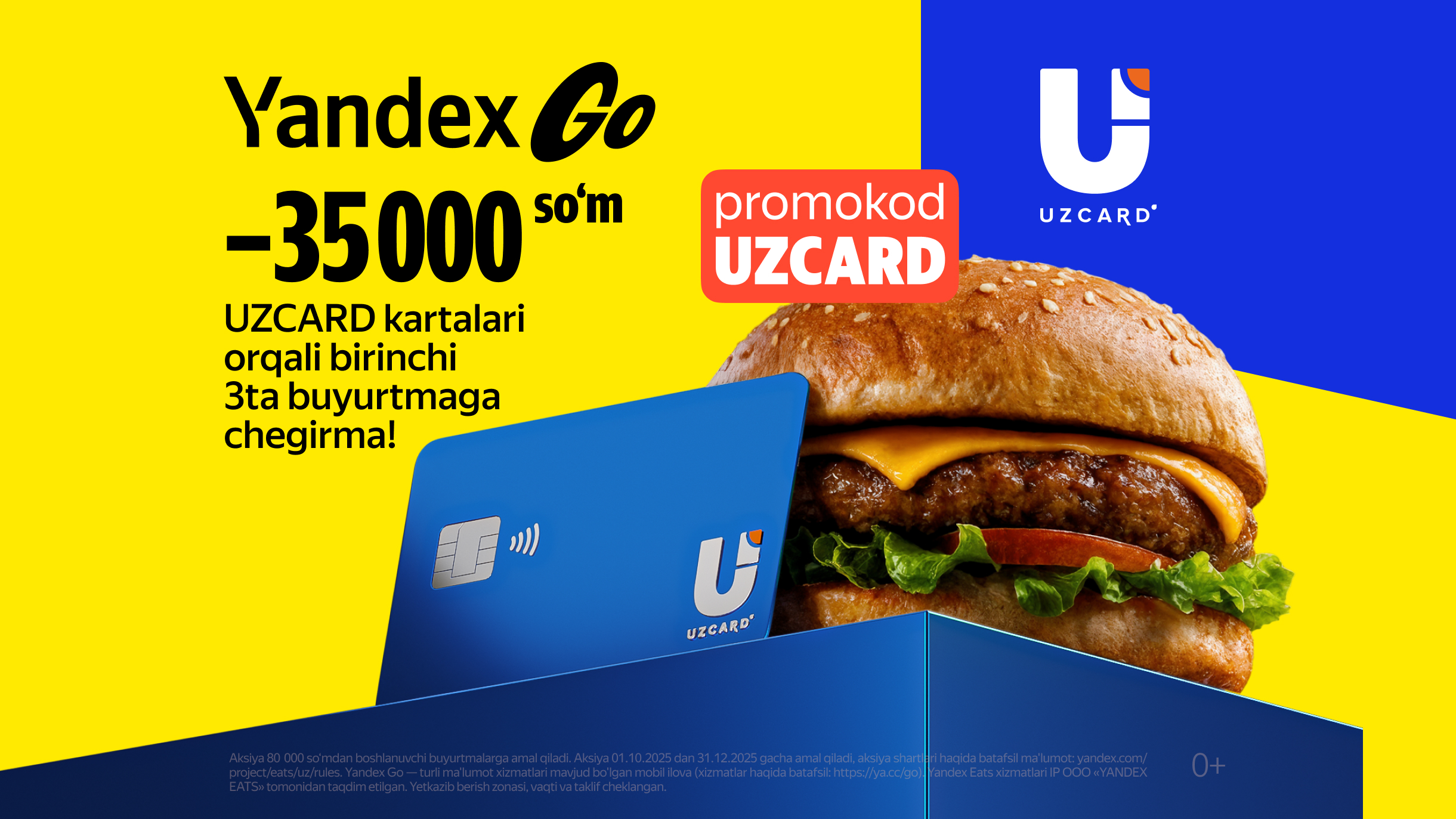 UZCARD mijozlar uchun imkoniyatlarni kengaytirishda davom etmoqda va kundalik hayotning turli sohalarida bonuslar taqdim etmoqda. Endi UZCARD kartalari egalari uchun yangi qulaylik: Yandex Eats ilovasida birinchi uchta buyurtmaning har biriga 35 000 so‘m chegirma.