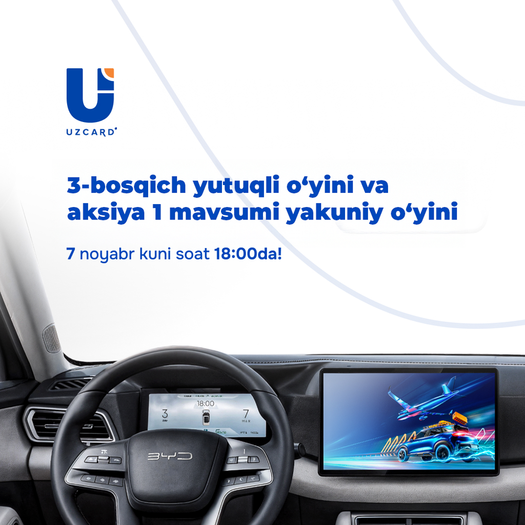 7-noyabr kuni UZCARDning yirik aksiyasi — “Omad mavsumi” birinchi mavsumining uchinchi bosqichi sovrinlari va final o‘yini o‘tkaziladi. G‘oliblar kompaniyaning rasmiy maydonchalaridagi jonli efirda aniqlanadi: UZCARDning YouTube kanali, promo.uzcard.uz sayti va @uzcard.uz Instagram akkauntida. Bu tadbir bir necha oy ichida UZCARD karta foydalanuvchilarining o‘n minglabini birlashtirgan loyiha birinchi seriyasining yorqin yakuni bo‘ladi.